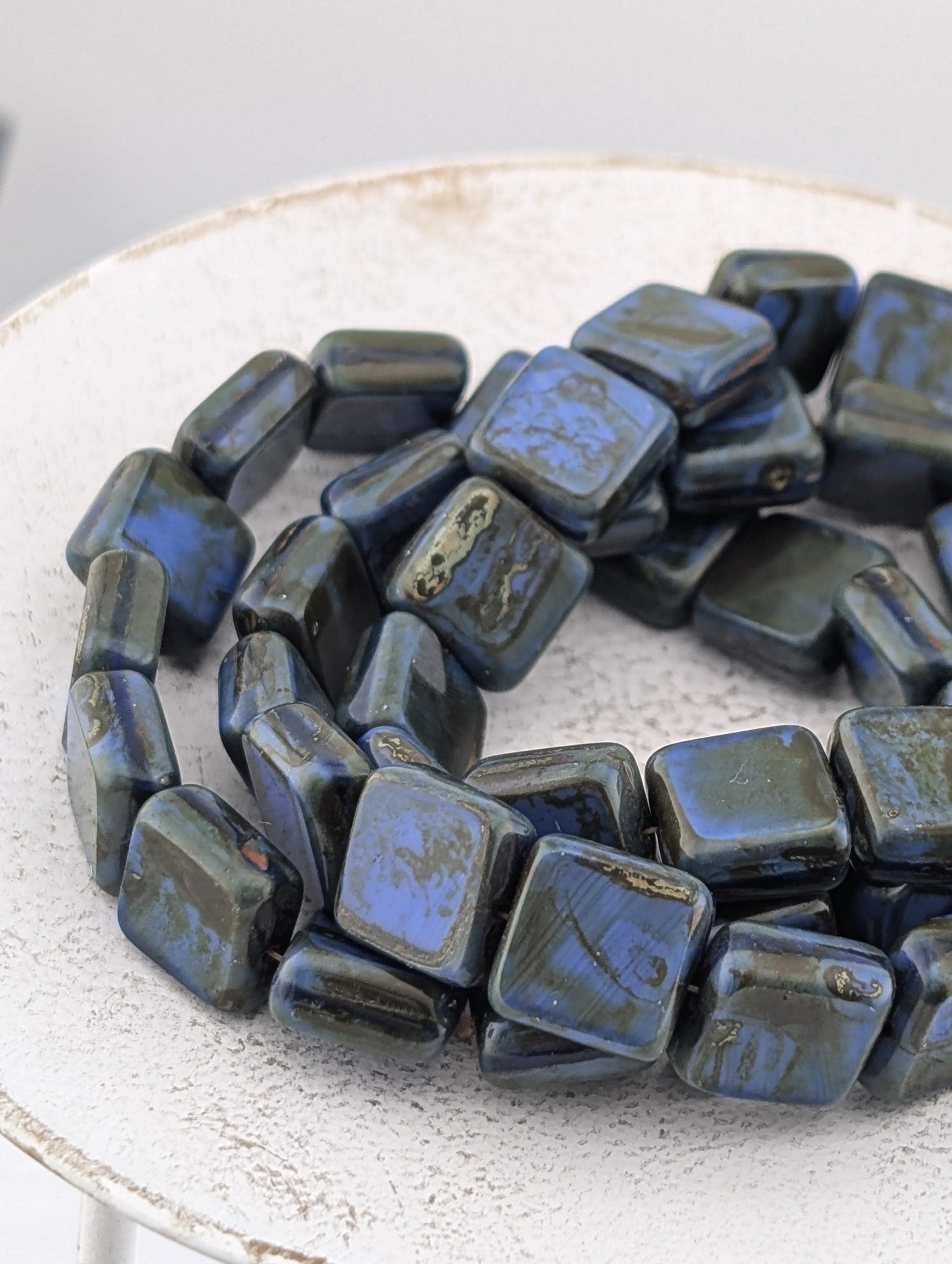Add a touch of boho elegance to your jewelry designs with these stunning 10mm Czech Glass Table Cut Square Milky Picasso Beads. Perfect for jewelry makers and craft enthusiasts, these tile-shaped beads bring a unique flair to your creations. Crafted from high-quality Czech glass, each bead features a captivating swirl pattern in earthy khaki tones, accented with a bronze wash finish that enhances their intricate details and rich, warm colors. Their striking design makes them ideal for creating one-of-a-kind earrings, necklaces, and bracelets that stand out.
