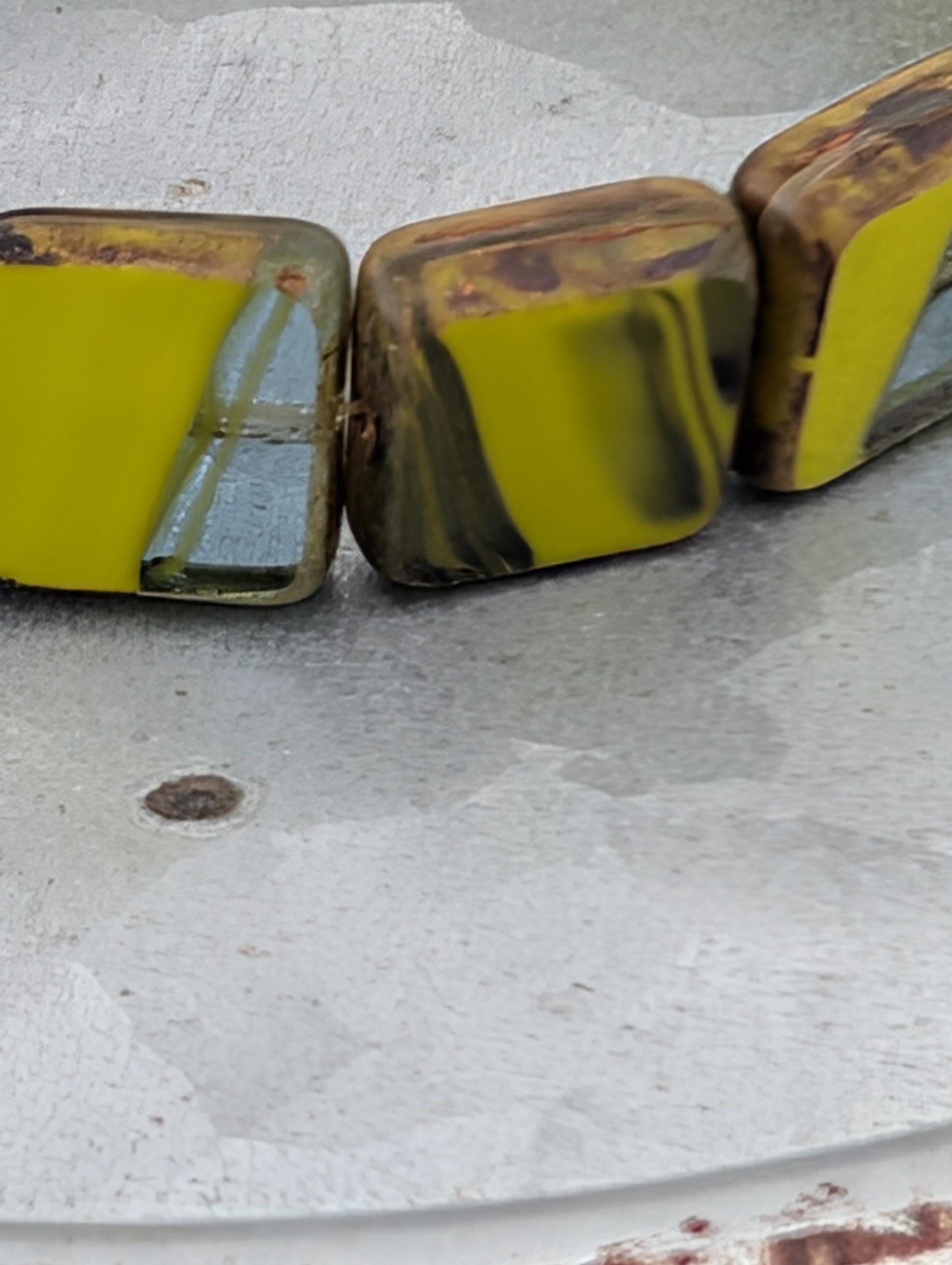 Elevate your jewelry designs with these stunning 10mm Czech Glass Table Cut Square Swirl Beads, a perfect addition to your boho jewelry making supplies. Crafted from high-quality Czech glass, these tile-shaped craft beads feature a captivating swirl pattern in vibrant chartreuse, accented with a bronze wash finish that highlights their intricate details and rich colors. Ideal for creating one-of-a-kind earrings, necklaces, and bracelets, these versatile beads bring a touch of boho charm to any project.