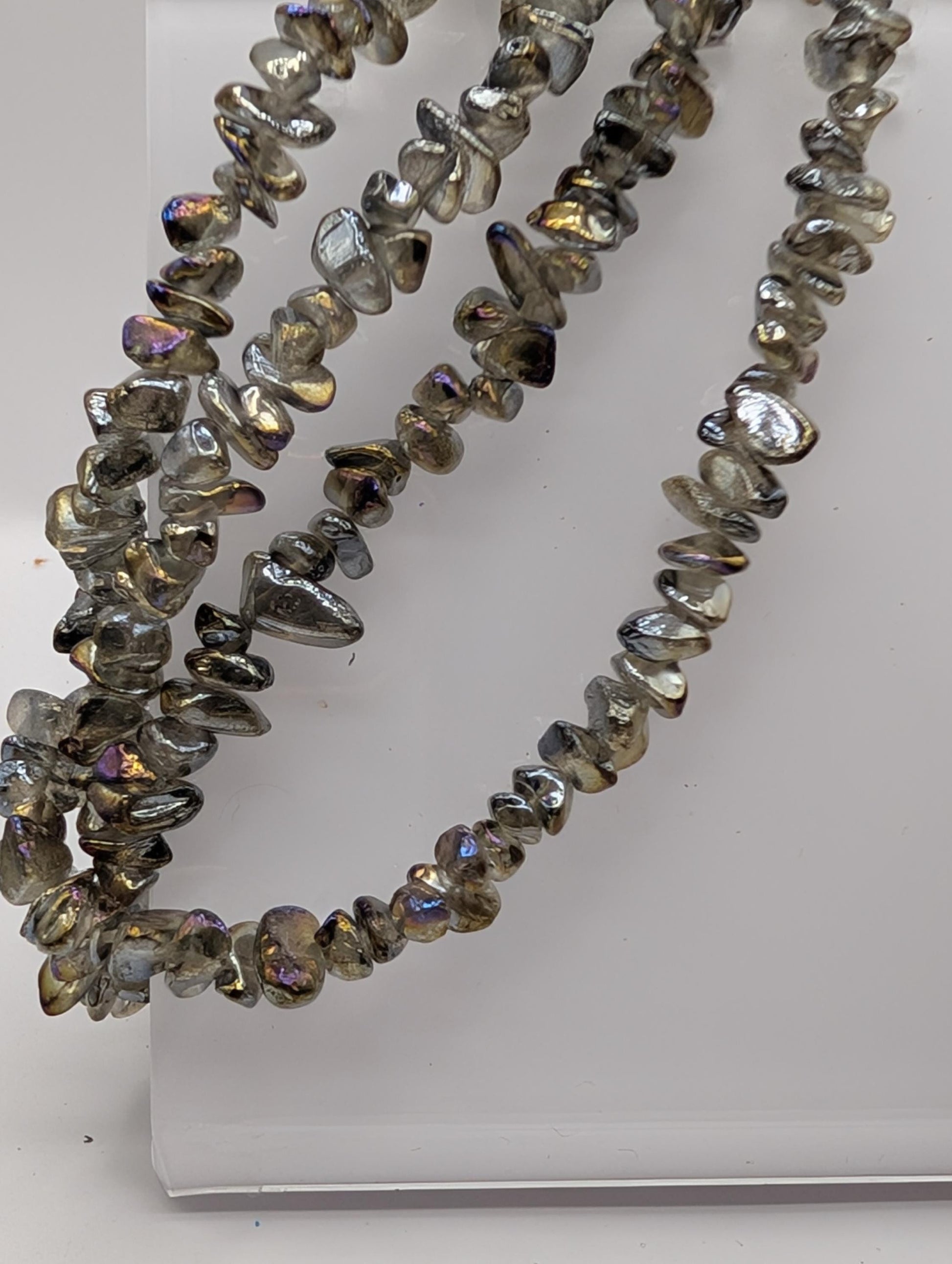Add vibrant texture and timeless sparkle to your handmade creations with these 36" strands of glass fire polished chip beads, perfect for jewelry making and crafts. Crafted for durability and consistent shine, these beads offer an authentic touch that sets your designs apart from mass-produced alternatives.