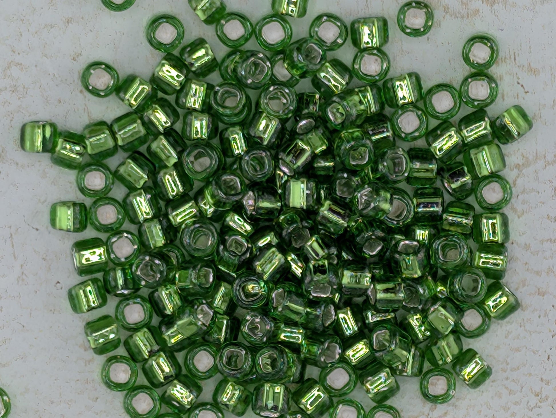 5146SB Silver Lined Translucent Lime Round With Square Hole 6/0 (15g Pkg)