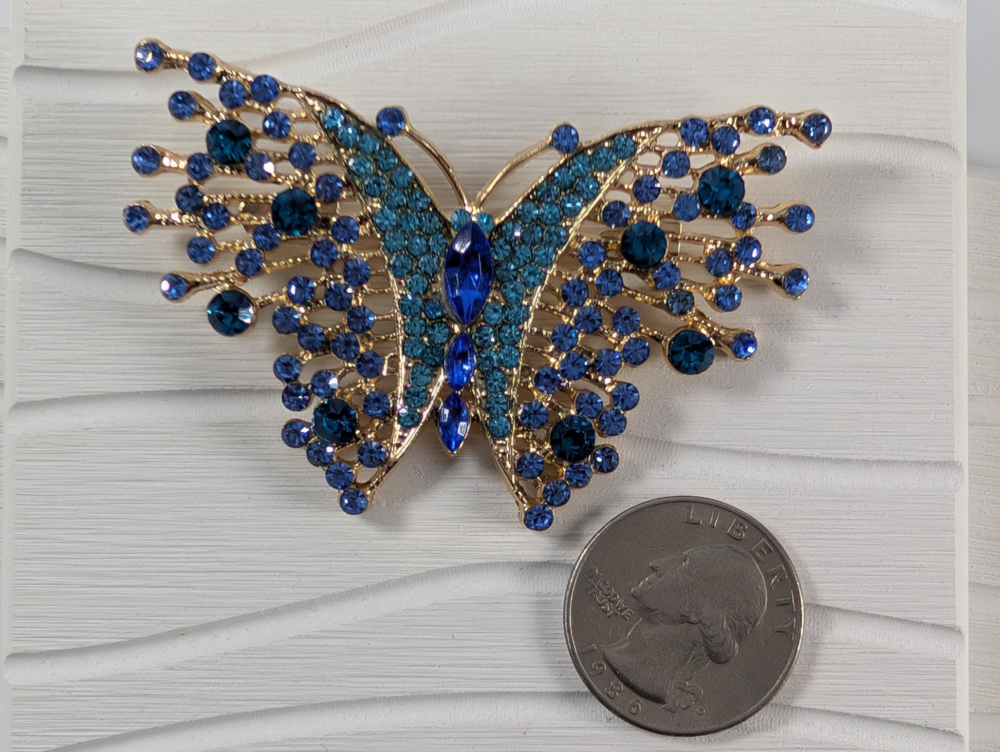 Aqua & Sapphire Rhinestone Butterfly Brooch