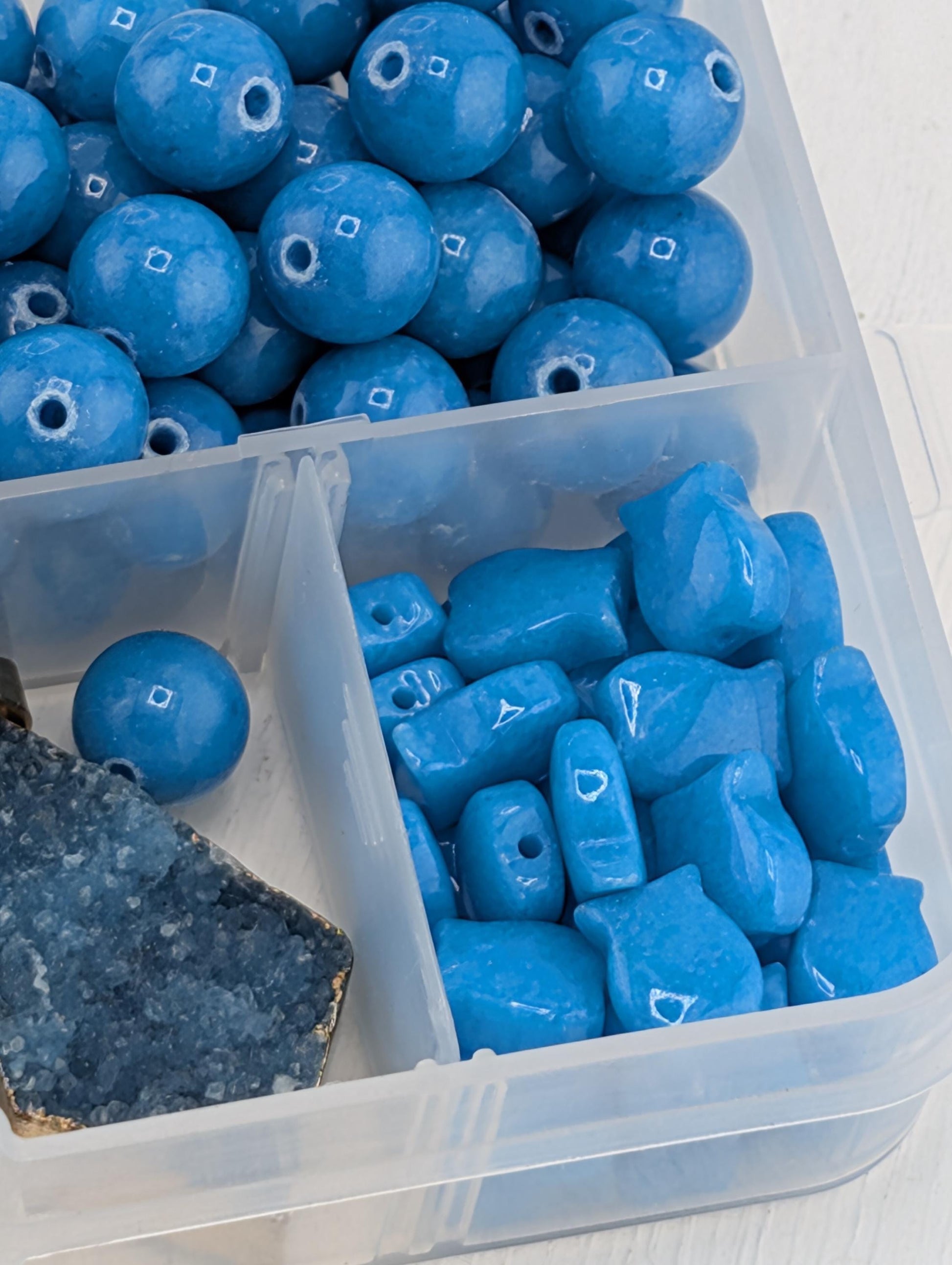 Blue Howlite and Wagnerite Gemstone Bead Set