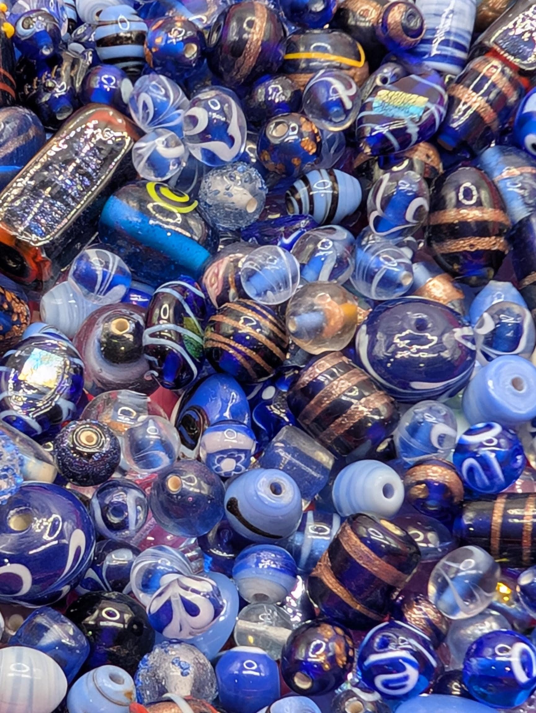 Blue Lampwork Glass Beads: Artisan Jewelry Making Supplies (1oz Bulk)