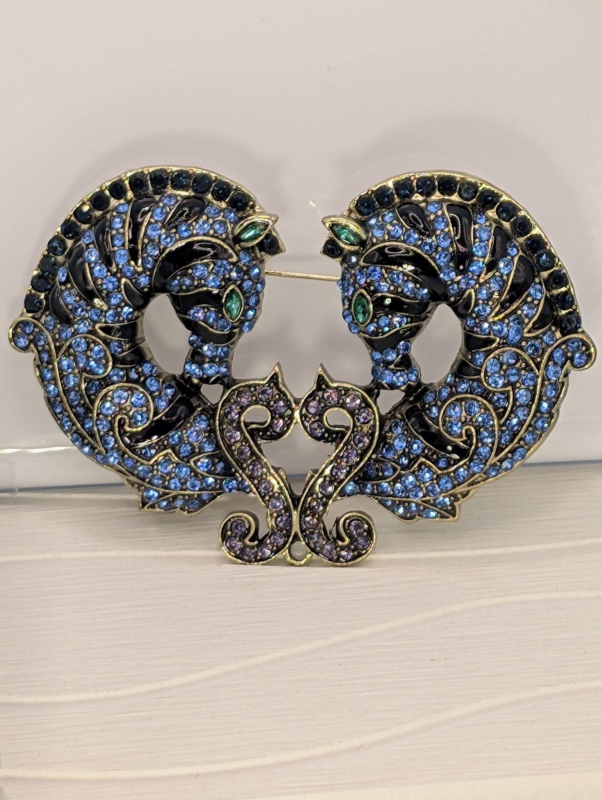 Blue Seahorse Pair Rhinestone Brooch