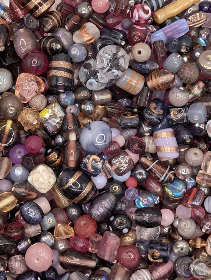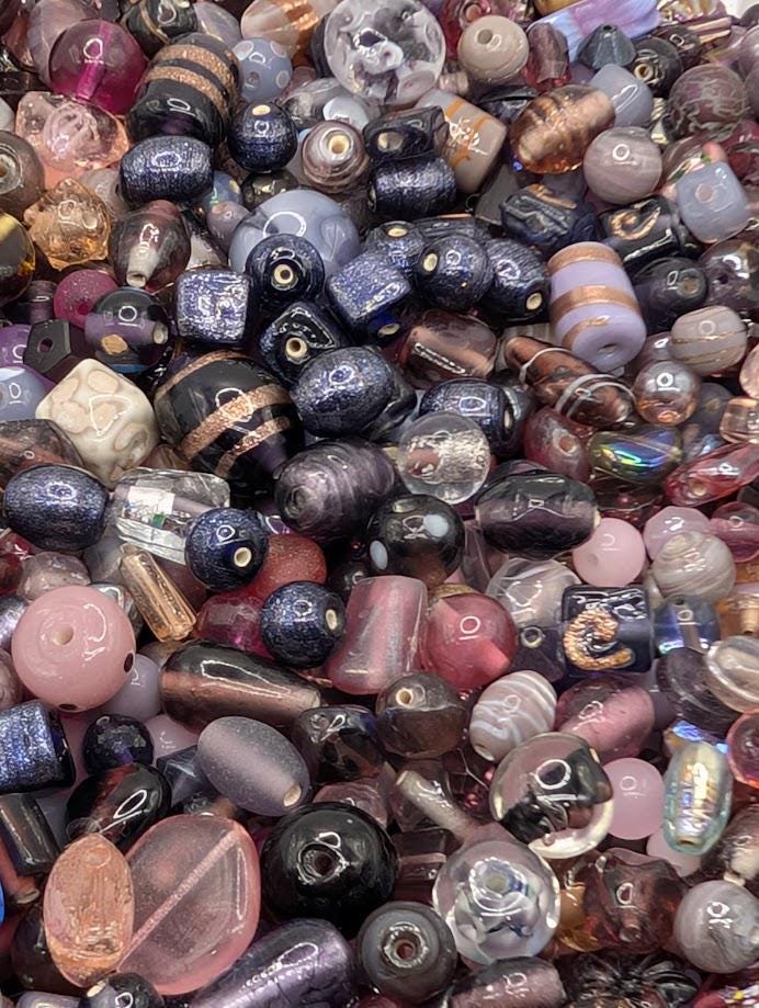 Elevate your jewelry making with our Pink and Black tones of Lampwork Murano Glass Bead Mix! This versatile assortment features handcrafted glass beads in an array of stunning colors and patterns, perfect for adding a unique touch to your designs. Each pack contains a generous 1oz of beads, ensuring you have plenty to work with for your creative projects.