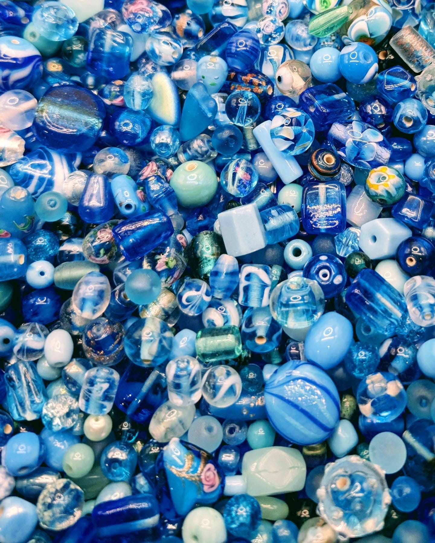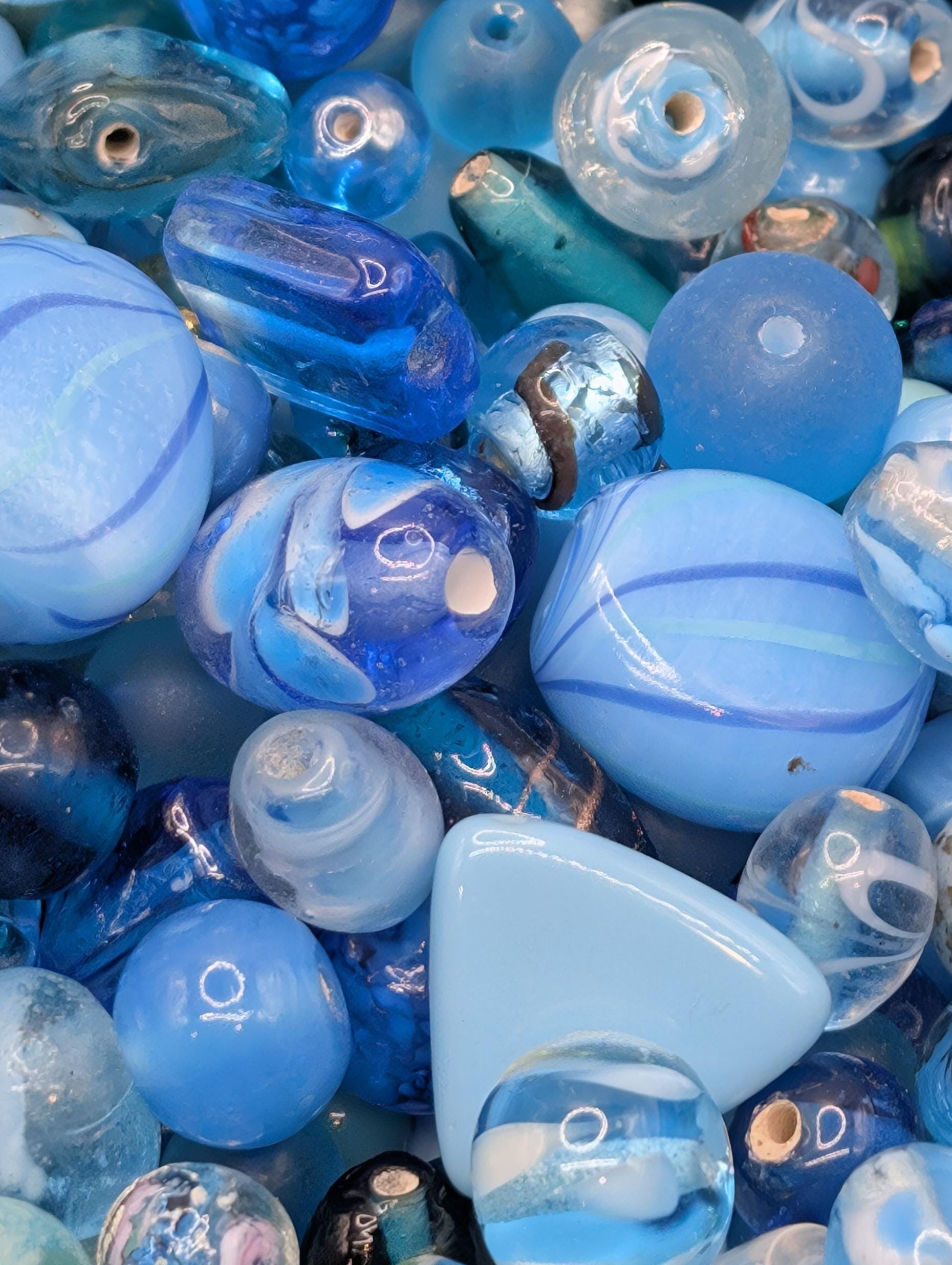 Light Blue and Aqua Mixed Lampwork Glass Beads (30g Pkg)