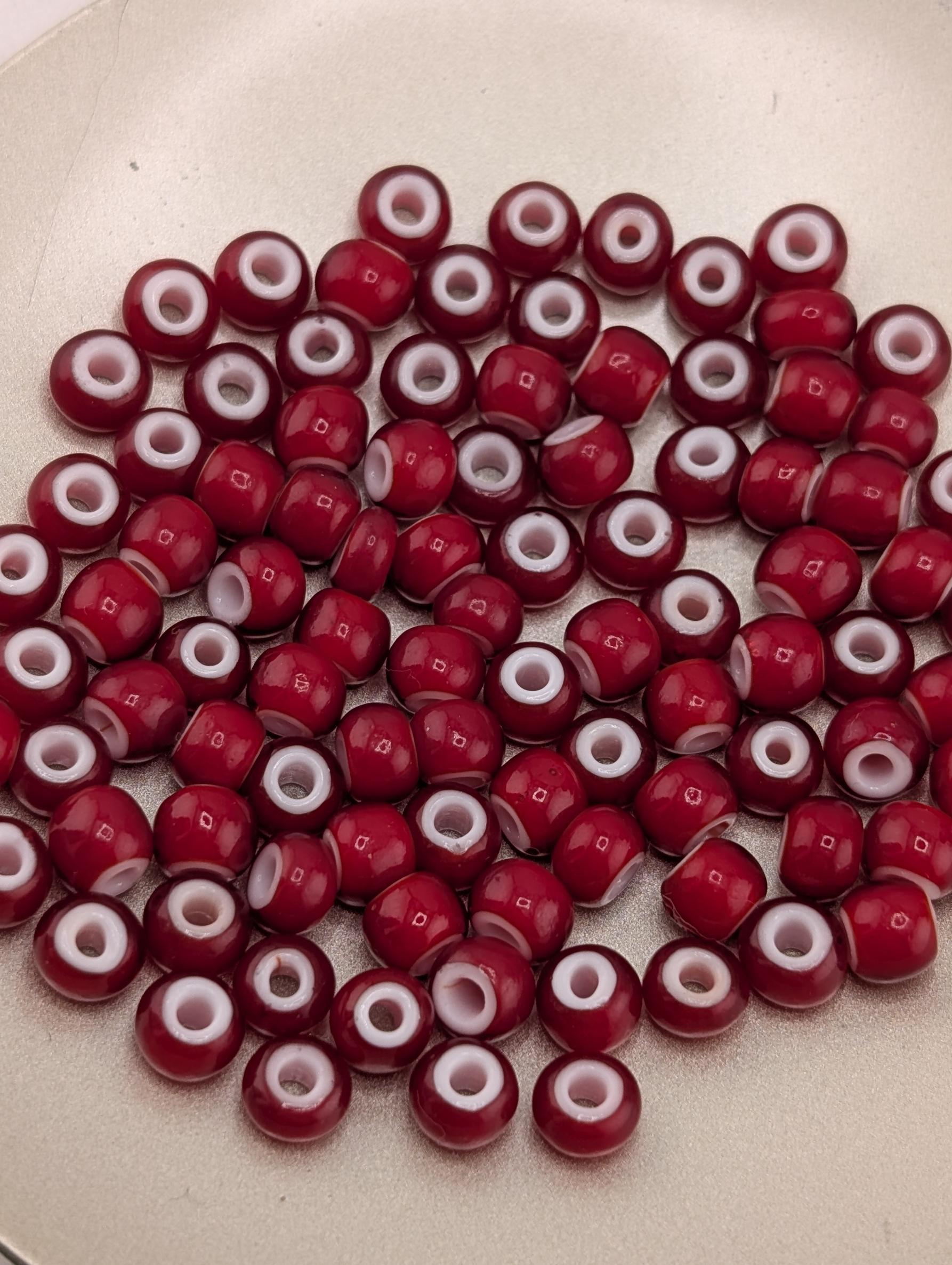 Cherry Red White Heart 5/0 Glass Seed Beads 30g 15g pkg