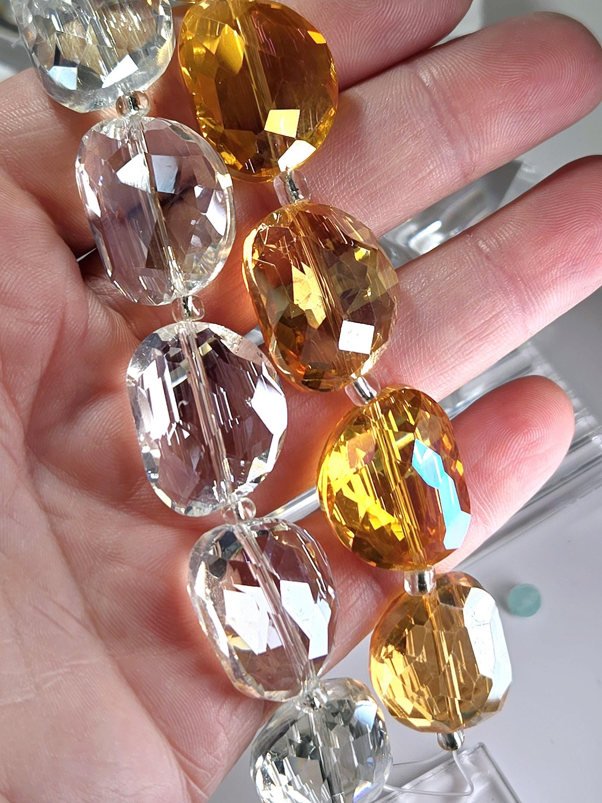 Elevate your DIY projects with these vibrant 8-10" strands of faceted irregular shape glass beads, perfect for adding a splash of color and unique texture to your jewelry designs. Each strand features exquisite 25x18mm beads that reflect light beautifully, inviting you to craft stunning pieces-click to explore and let your creativity shine!