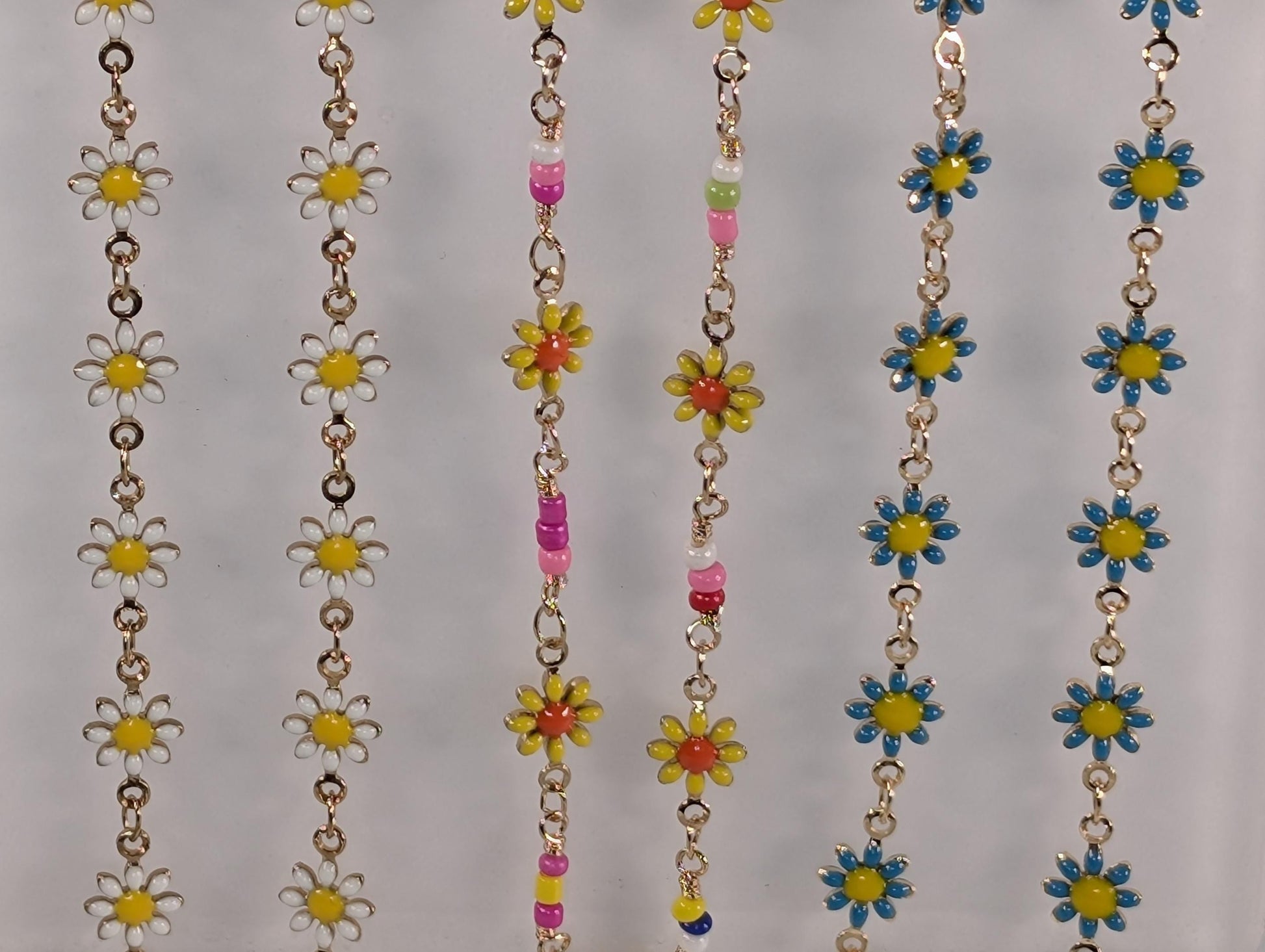 Gold Plated Enamel daisy flower Chain Bulk Chain Gold Plated Chain By The Foot, For Jewelry Making and Crafts, Vibrant and versatile natured chain is perfect for adding a pop of color to any jewelry piece or craft project. With its Gold plating, it brings a touch of elegance to any creation. Perfect for creating unique and eye-catching designs, this chain is a must-have for any creative individual.