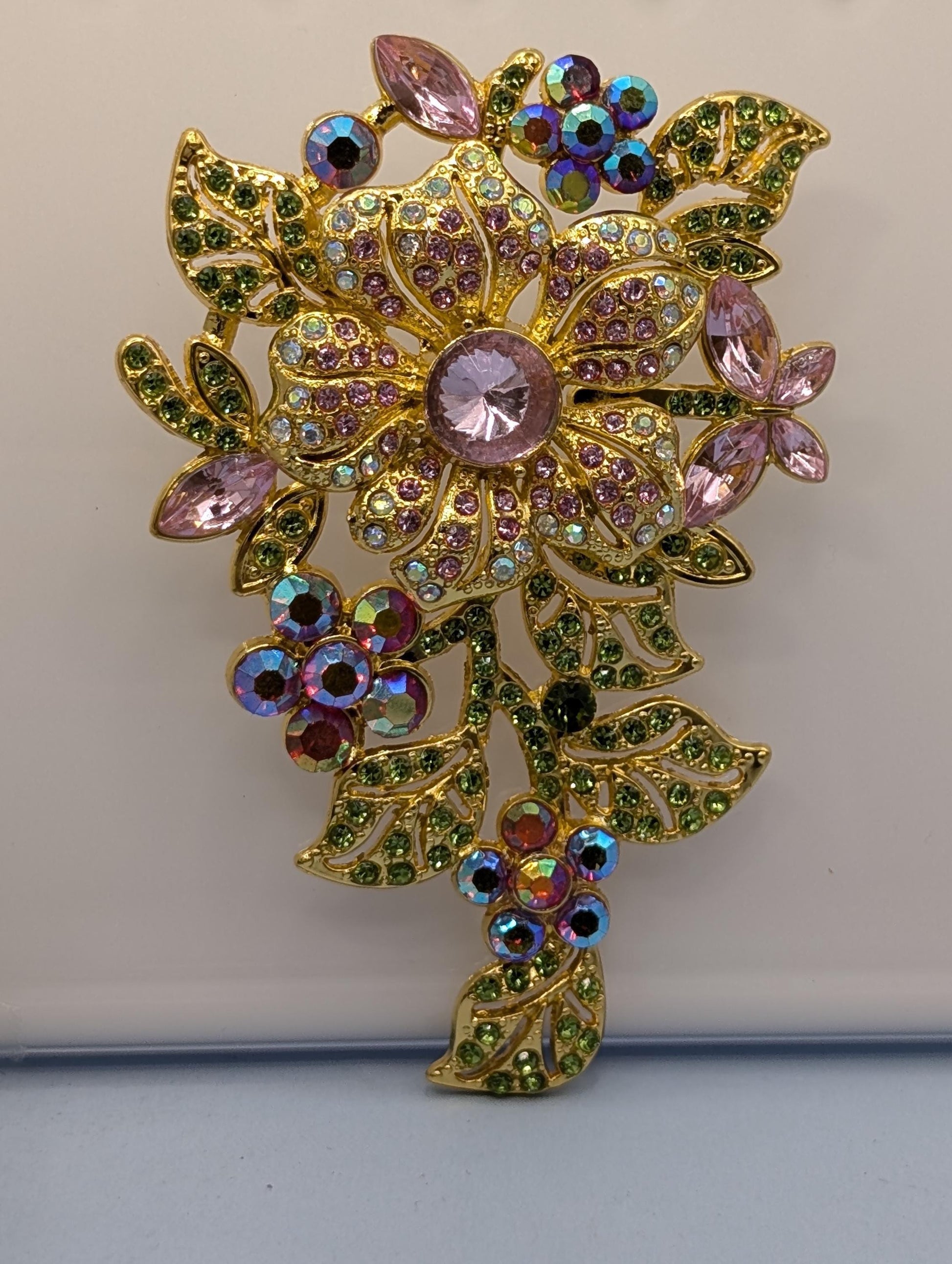 Discover the delicate charm of this gold plated rhinestone floral brooch, a perfect blend of elegance and whimsy. Designed as a decorative pin and fashion accessory, it adds a sparkling touch to any outfit or DIY bag charm project. Whether you're searching for an elegant jewelry piece or a unique gift idea, this brooch brings a timeless glow to your collection.