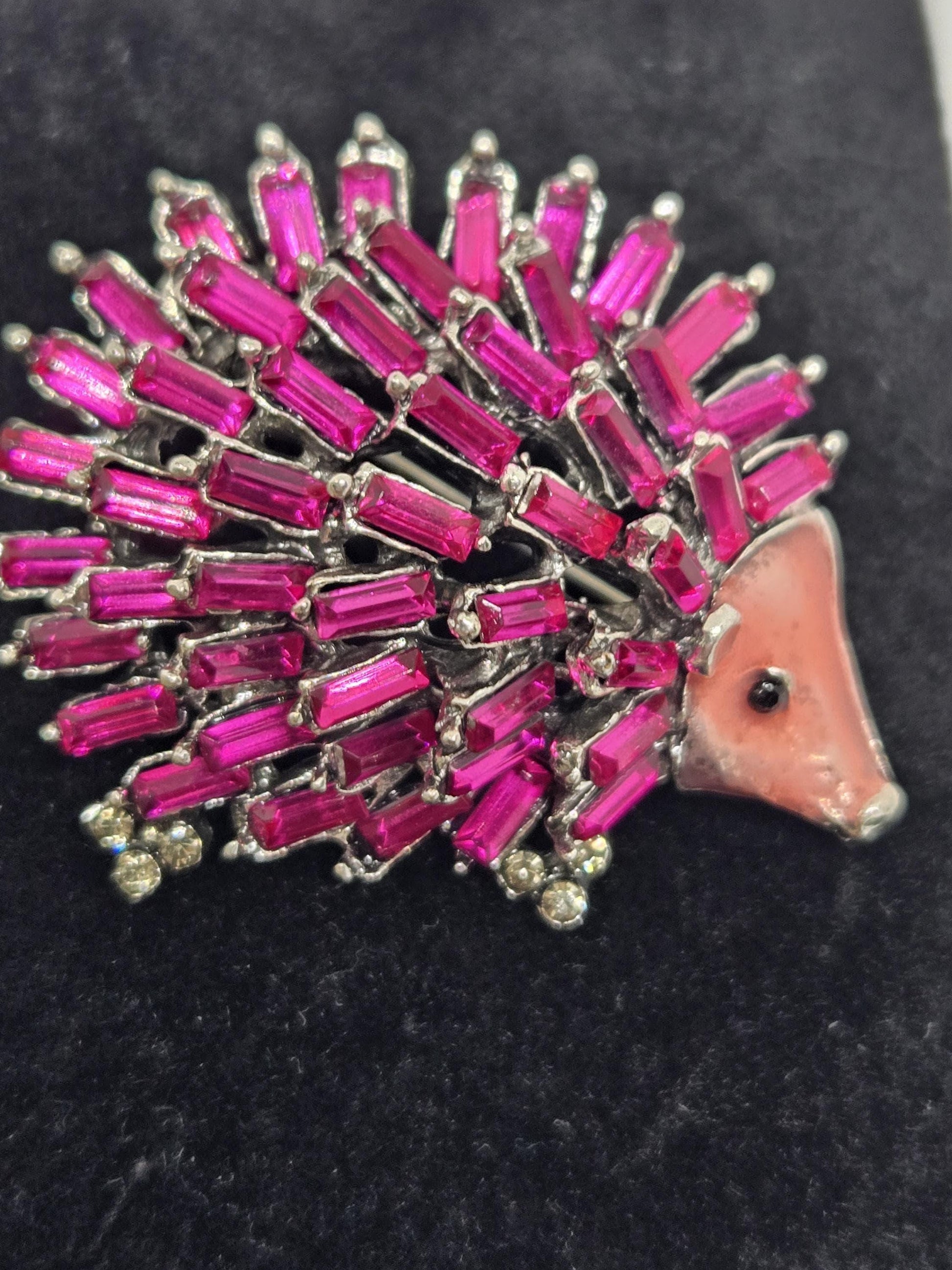 Meet your new quirky sidekick: the fabulously outrageous Fuchsia Rhinestone Porcupine Brooch! Measuring a delightful 40x45mm, this little gem is silver-plated and bursting with sparkling rhinestones, ensuring you'll be the most fashion-forward porcupine at the party (sorry, woodland pals!). Ideal for those with a playful flair, this brooch is a must-have for friends who embrace their inner oddball and love all things prickly.