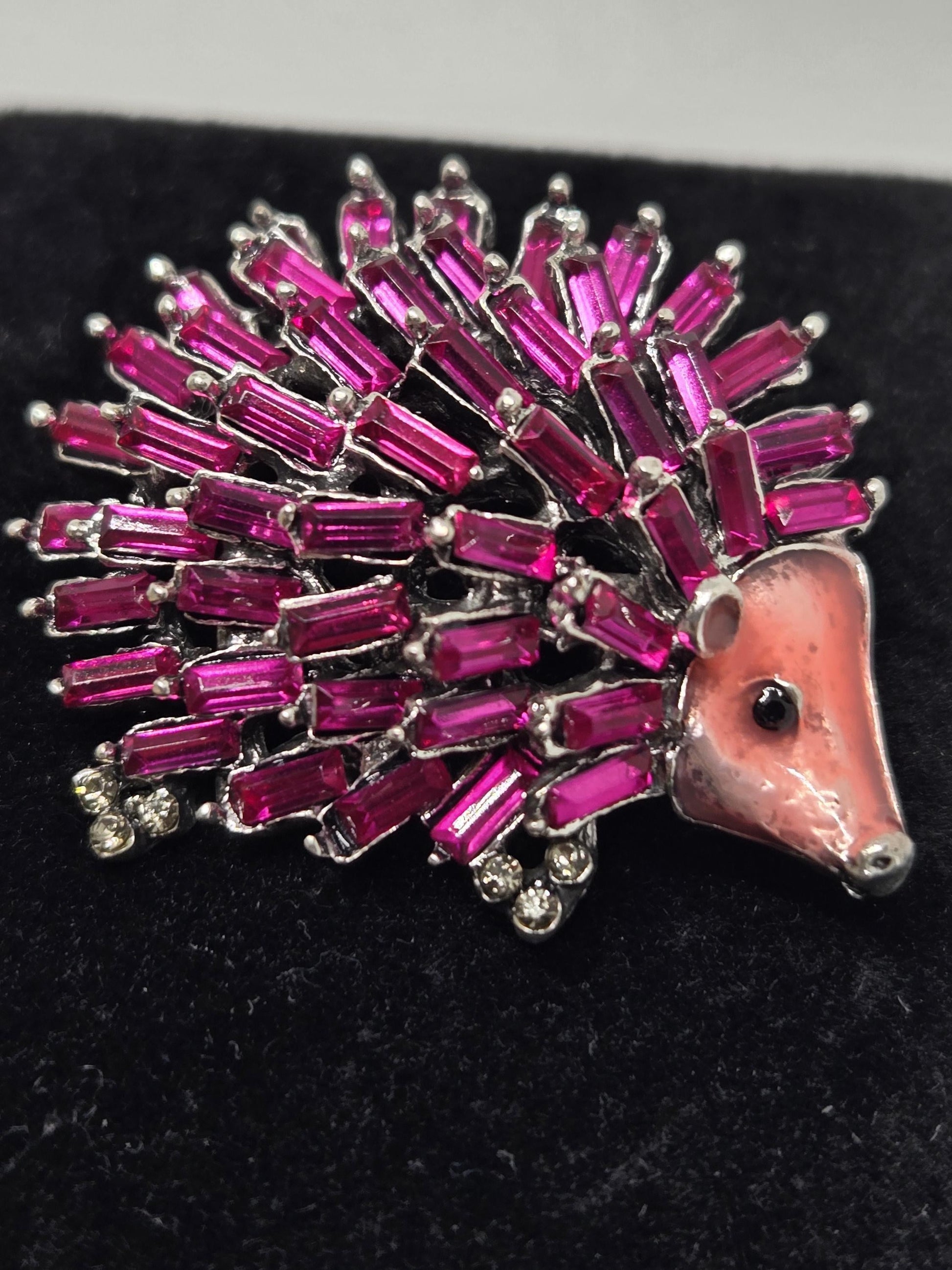 Discover the charm of this whimsical brooch, a true standout among colorful brooches and elegant jewelry. Crafted with silver plating and adorned with sparkling rhinestones, it brings a playful yet sophisticated flair to any outfit. Whether you're searching for a unique gift idea or a decorative pin to brighten your collection, this delightful accessory captures attention with its vibrant fuchsia hue and quirky porcupine design.