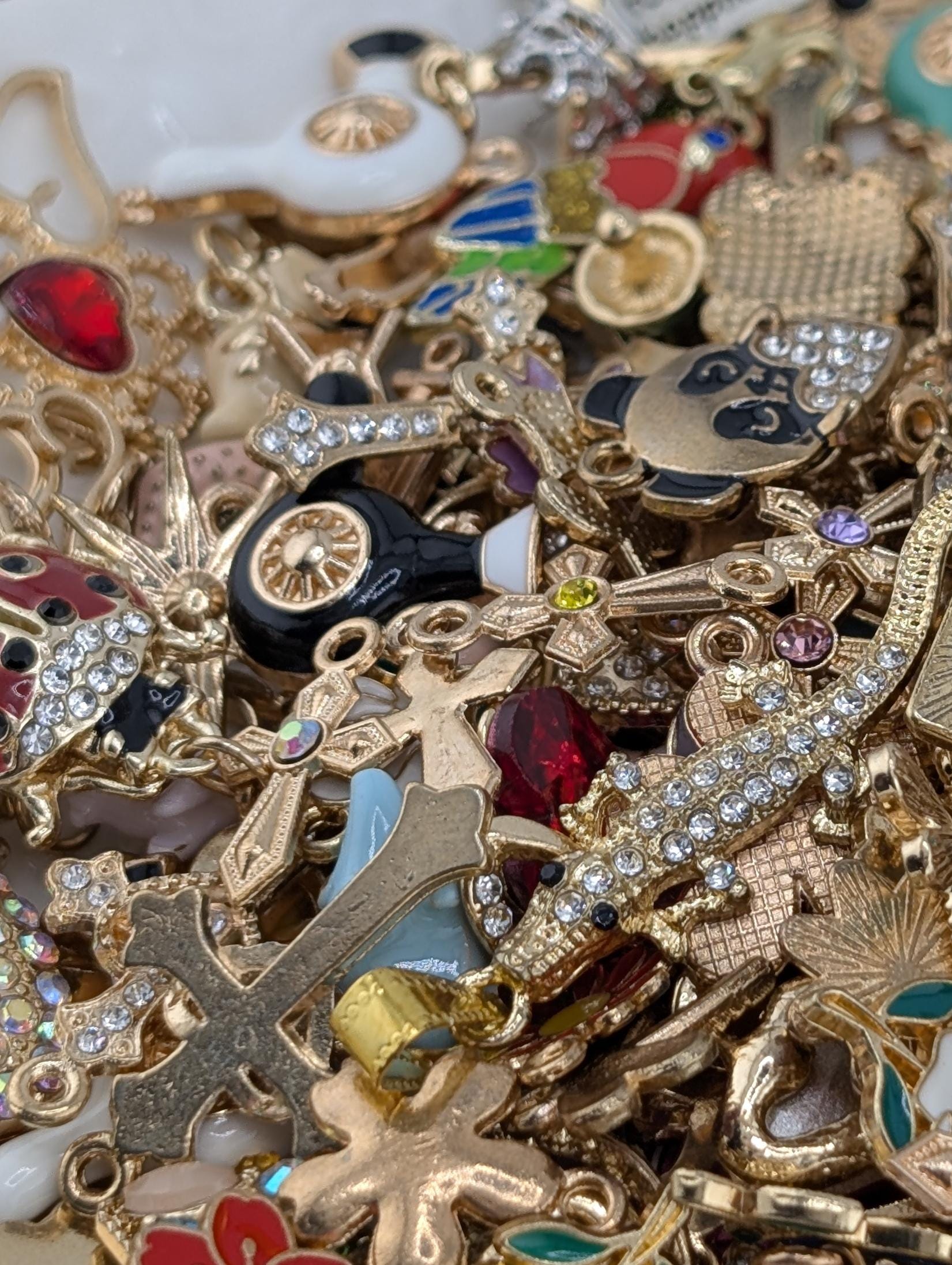 Golden Tone Enamel & Rhinestone Charm Grab Bags 30g (20-22 charms)