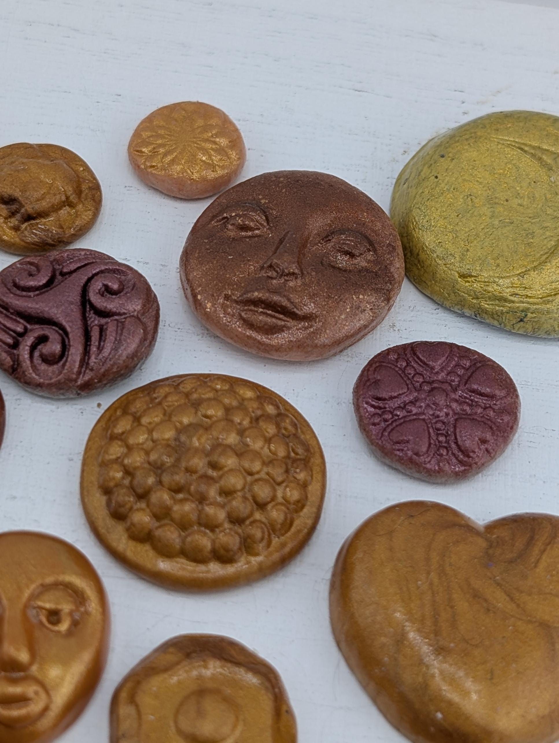 - 40 handcrafted polymer clay faces in a variety of earthy and vibrant tones
