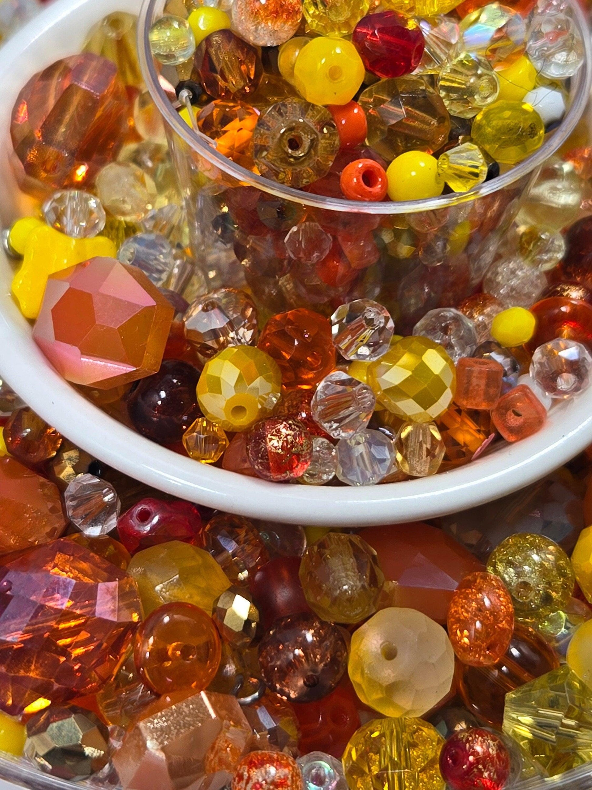 - 🎨 Contains a 30g package of mixed orange and yellow glass beads