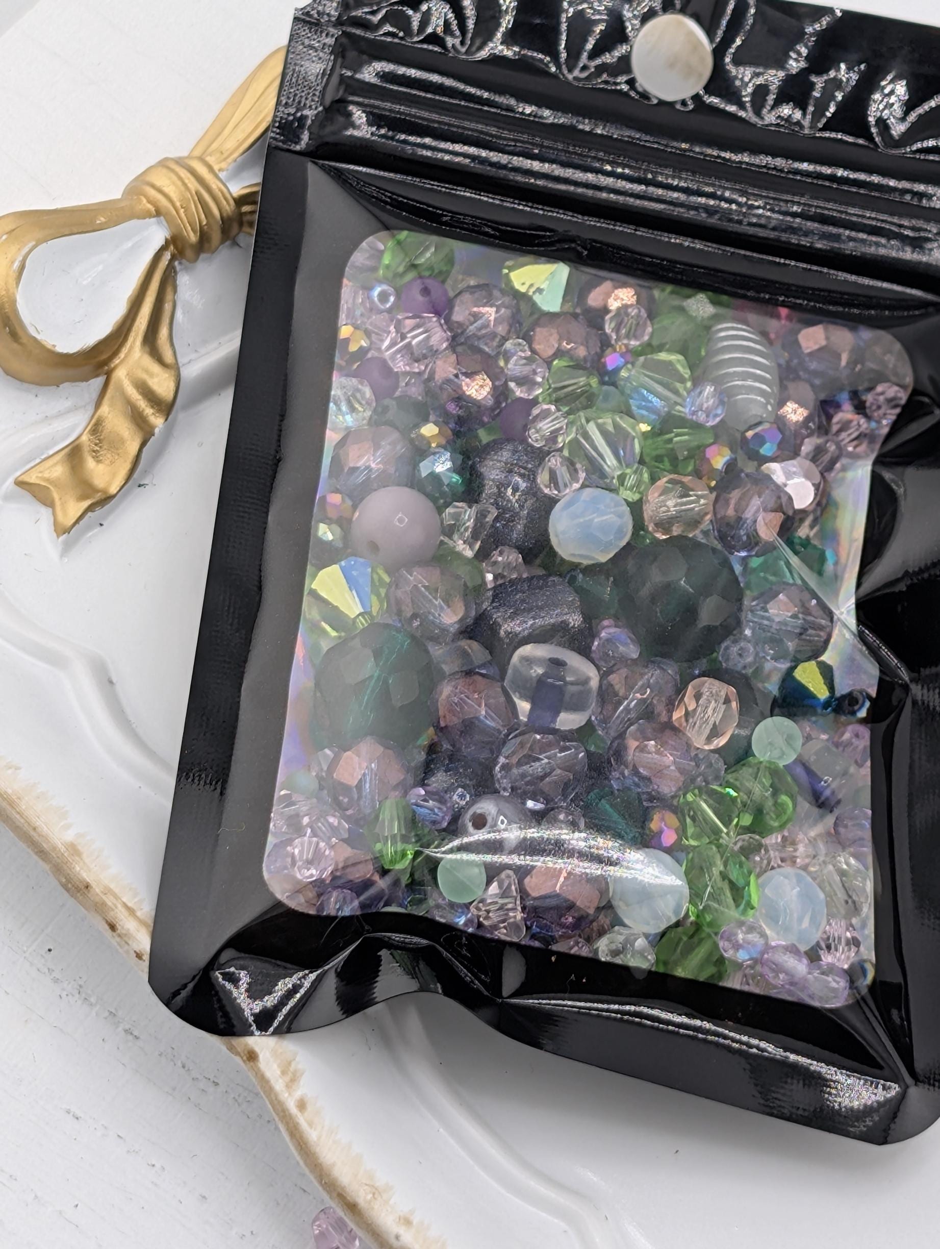 Discover our Exclusive "Twilight Garden" Bead Mix-a stunning collection of jewel tone glass beads perfect for creating enchanted forest or celestial-themed jewelry. This premium supply features rich hues of amethyst purple, deep emerald green, and twilight blue glass, offering a luxurious look for necklaces, earrings, and bracelets.