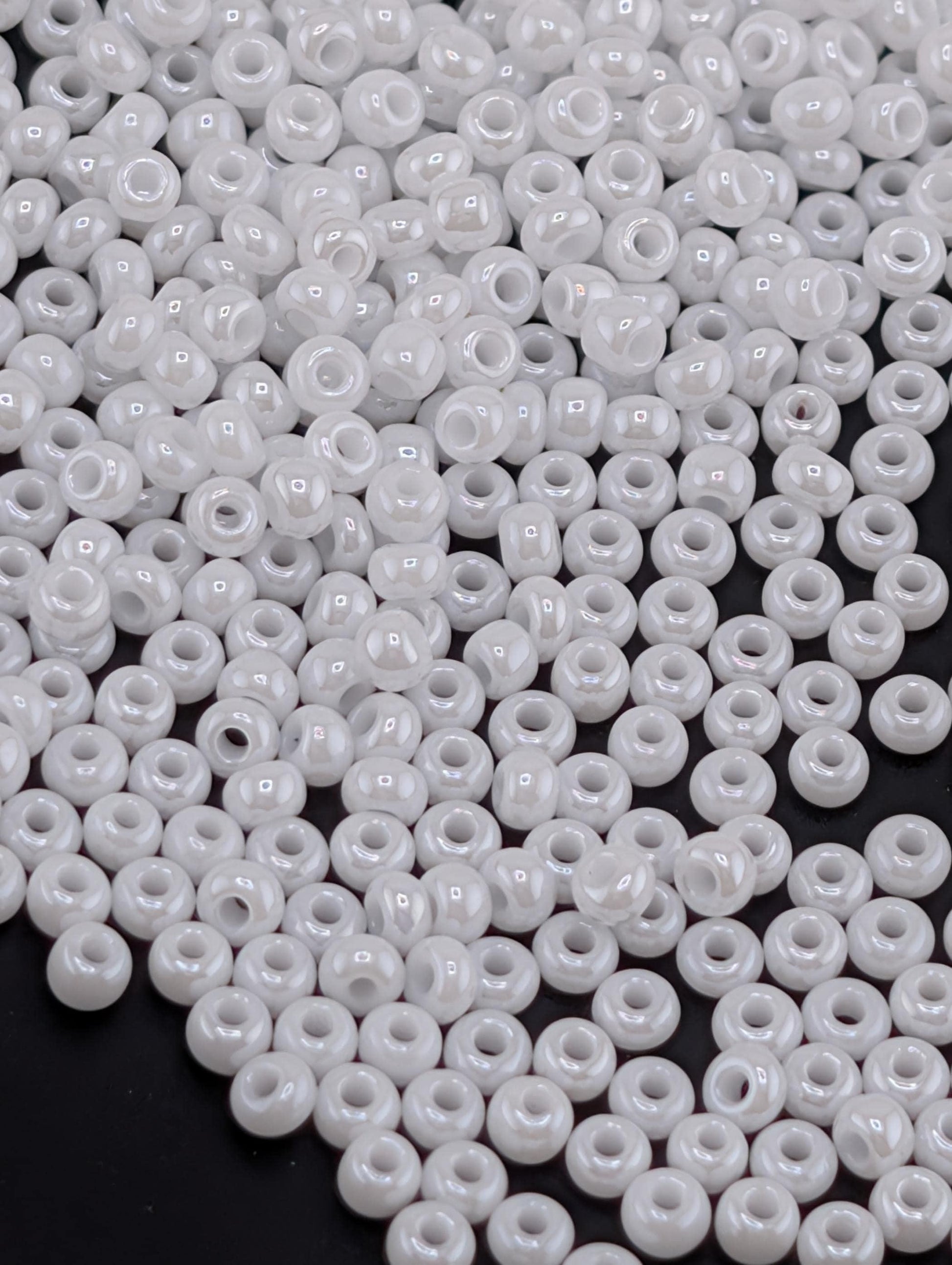 Discover Preciosa Opaque White Luster Size 10/0 seed beads, perfect for your jewelry and craft projects. These high-quality Preciosa seed beads are known for their bright color and consistent size.