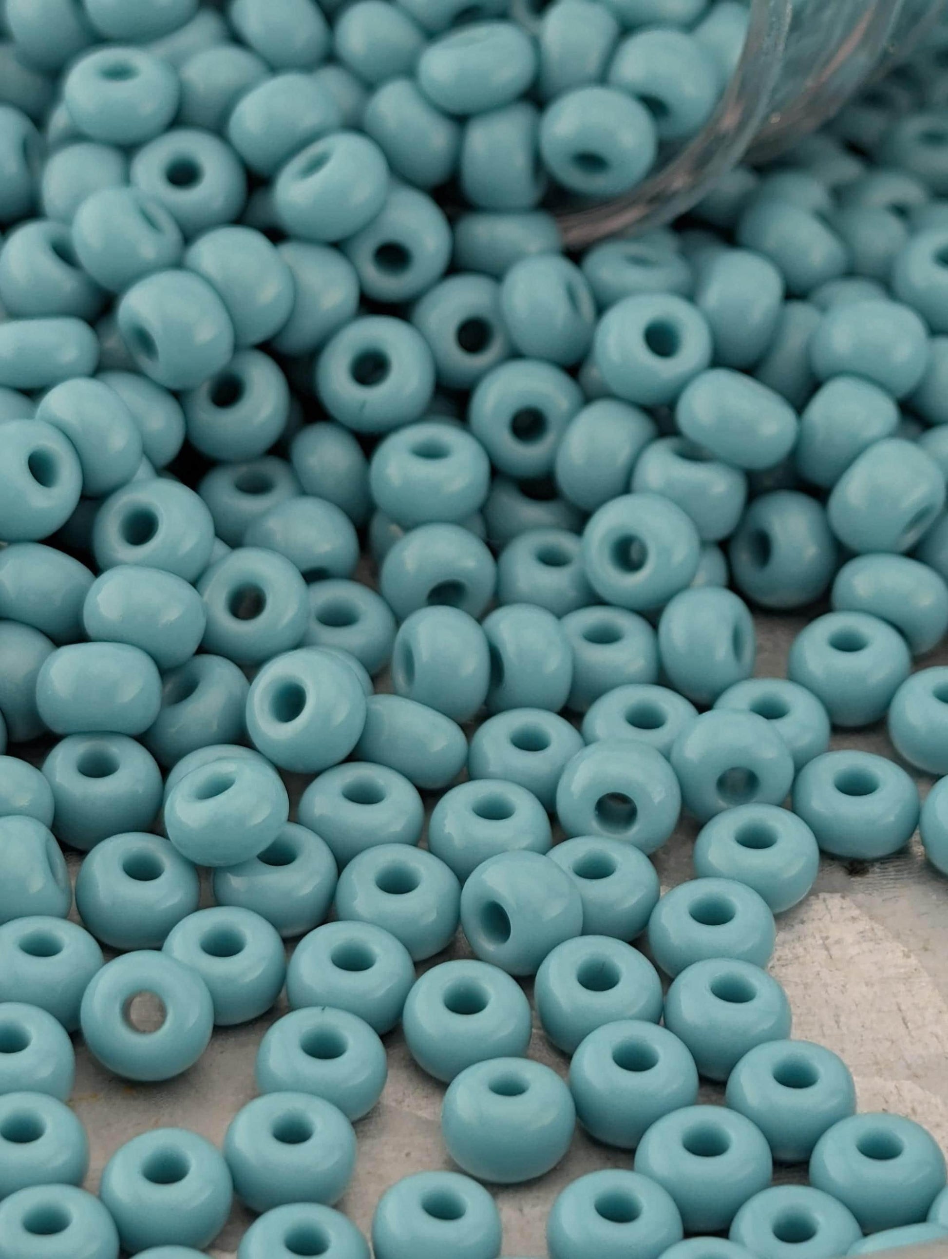 Discover Preciosa Opaque Turquoise Green Size 6/0 seed beads, perfect for your next jewelry or craft project. These vibrant glass seed beads offer consistent color and quality.