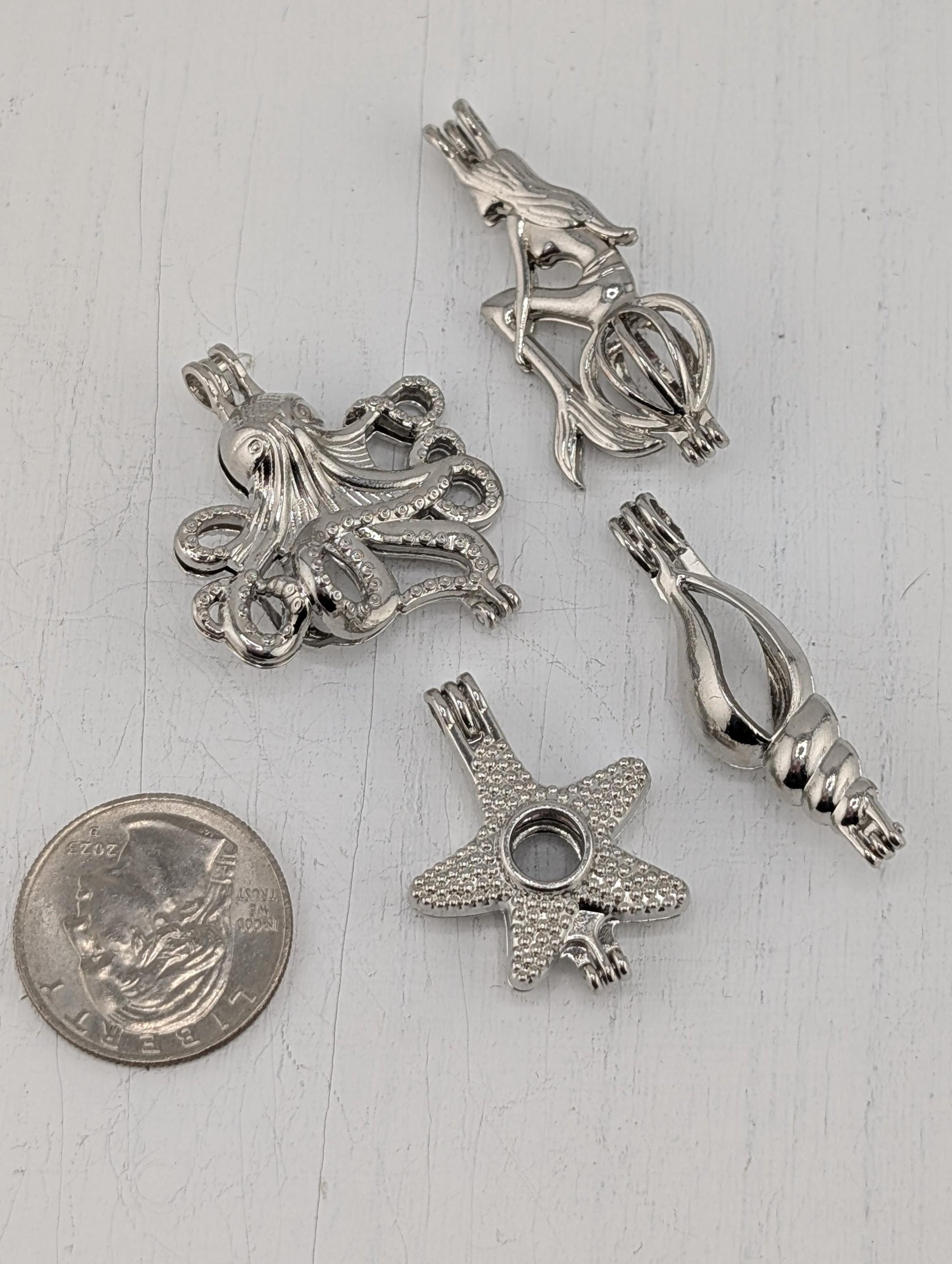 Set of 5 Gemstone Bead Holder Pendant or Bag Charm