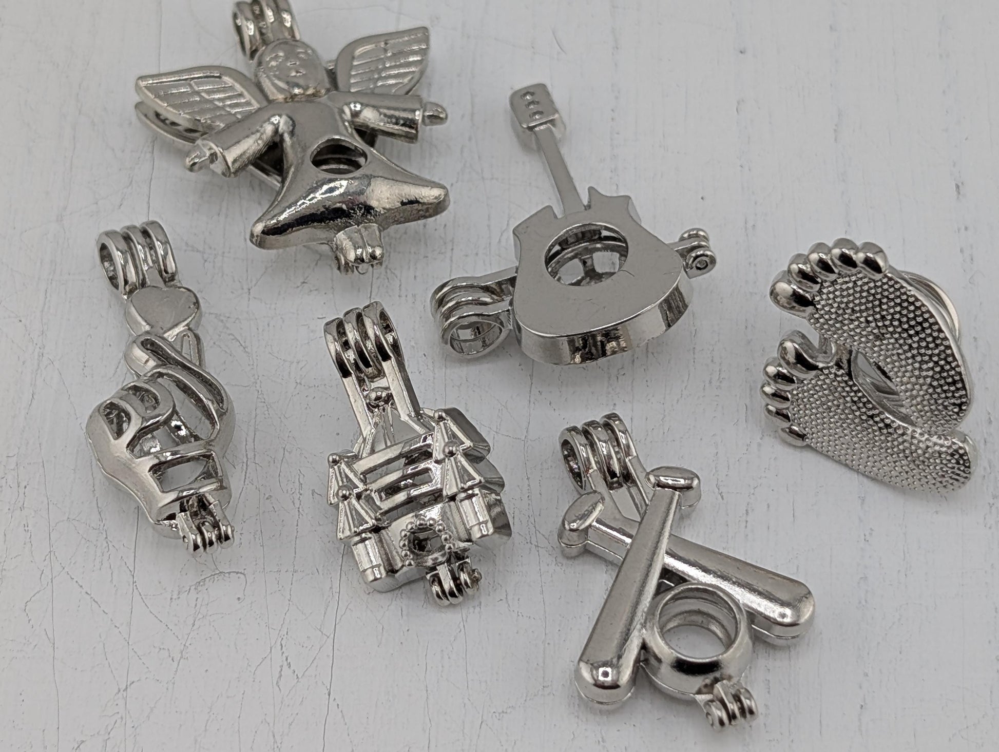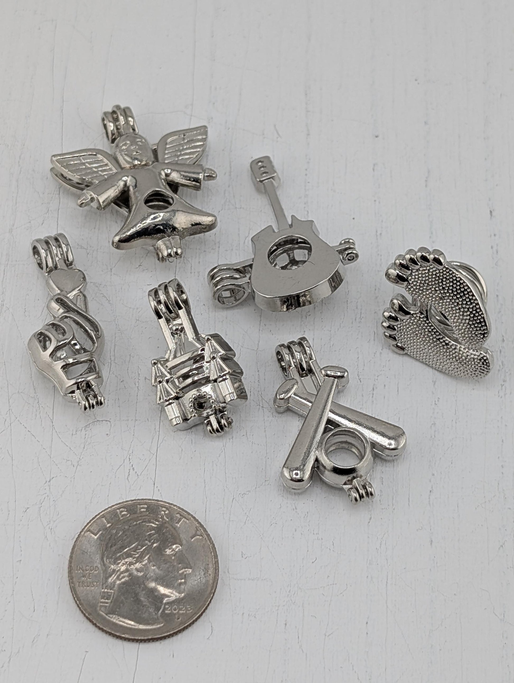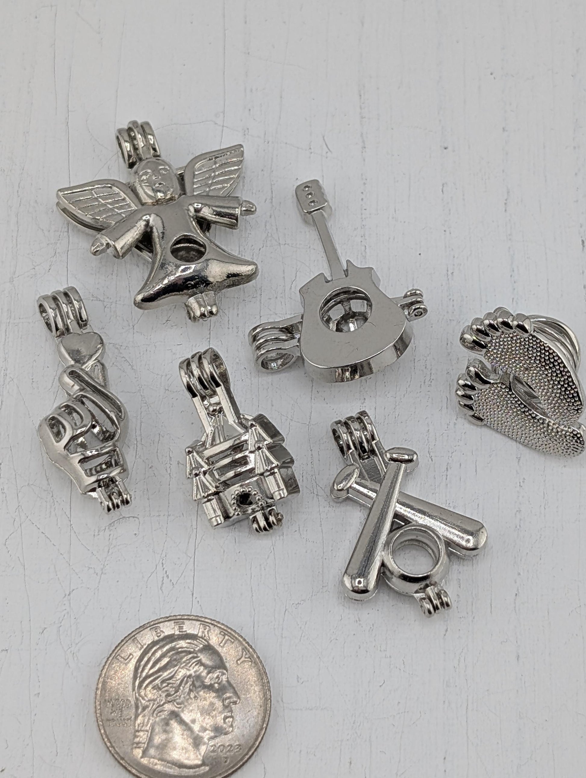 Set of 6 Gemstone Bead Holder Pendant or Bag Charm