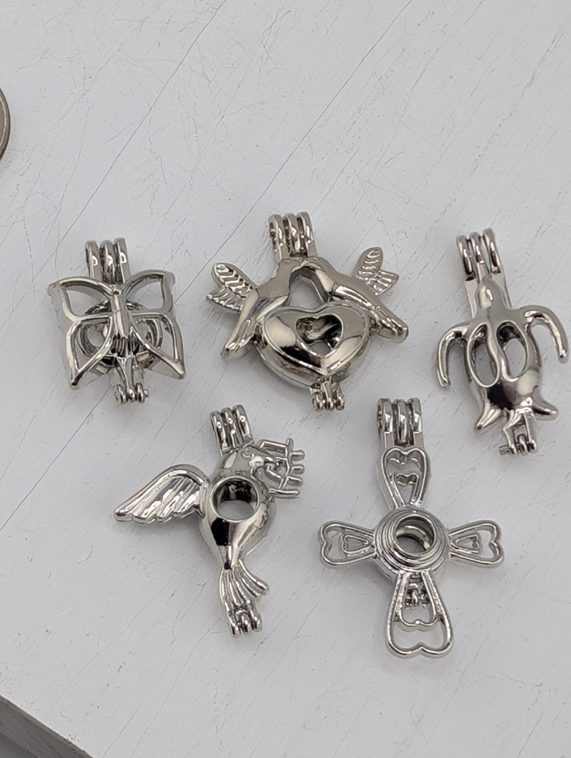 Set of 6 Gemstone Bead Holder Pendant or Bag Charm