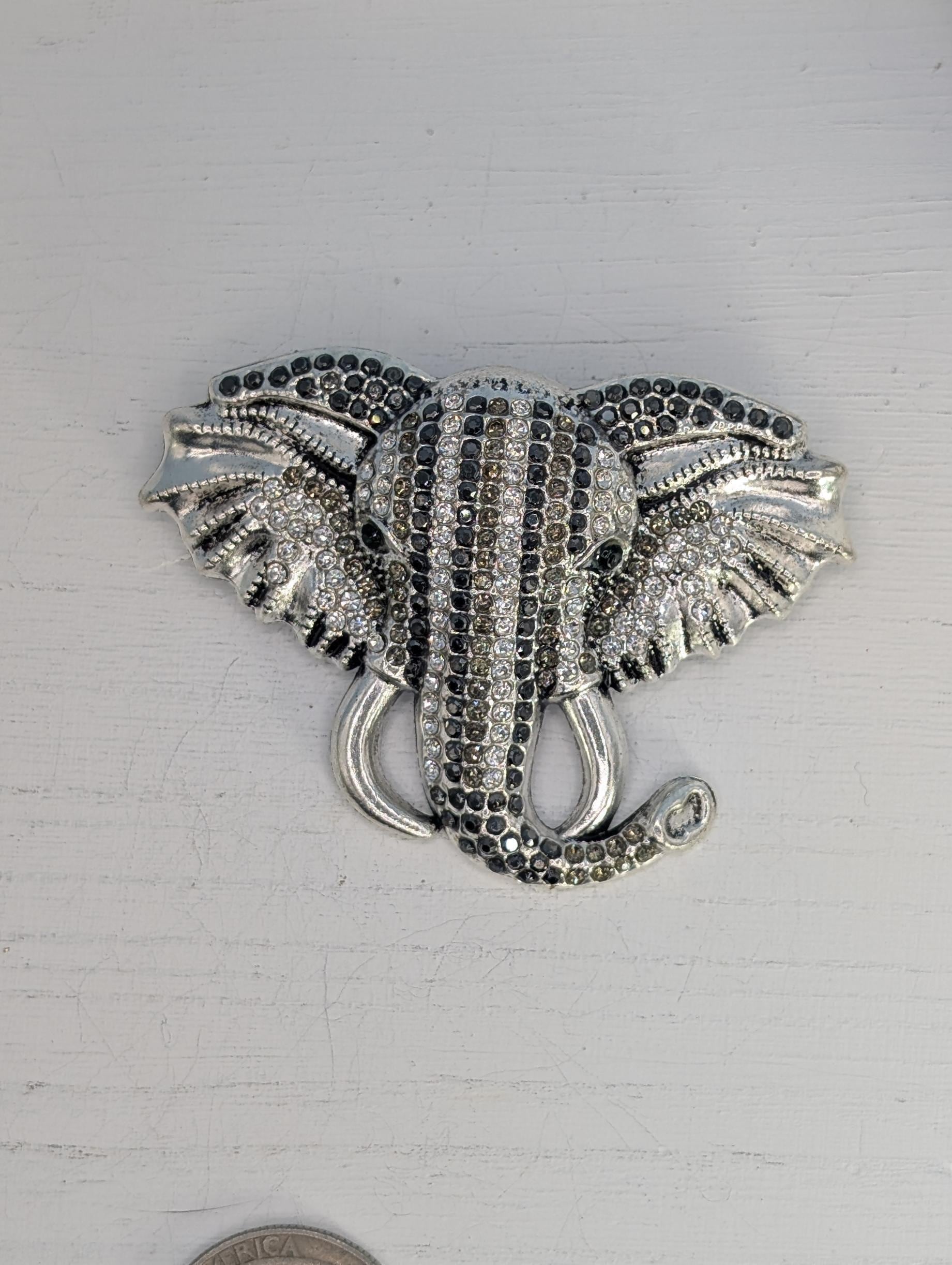 Silver Plated CZ and Black Rhinestone Elephant Brooch