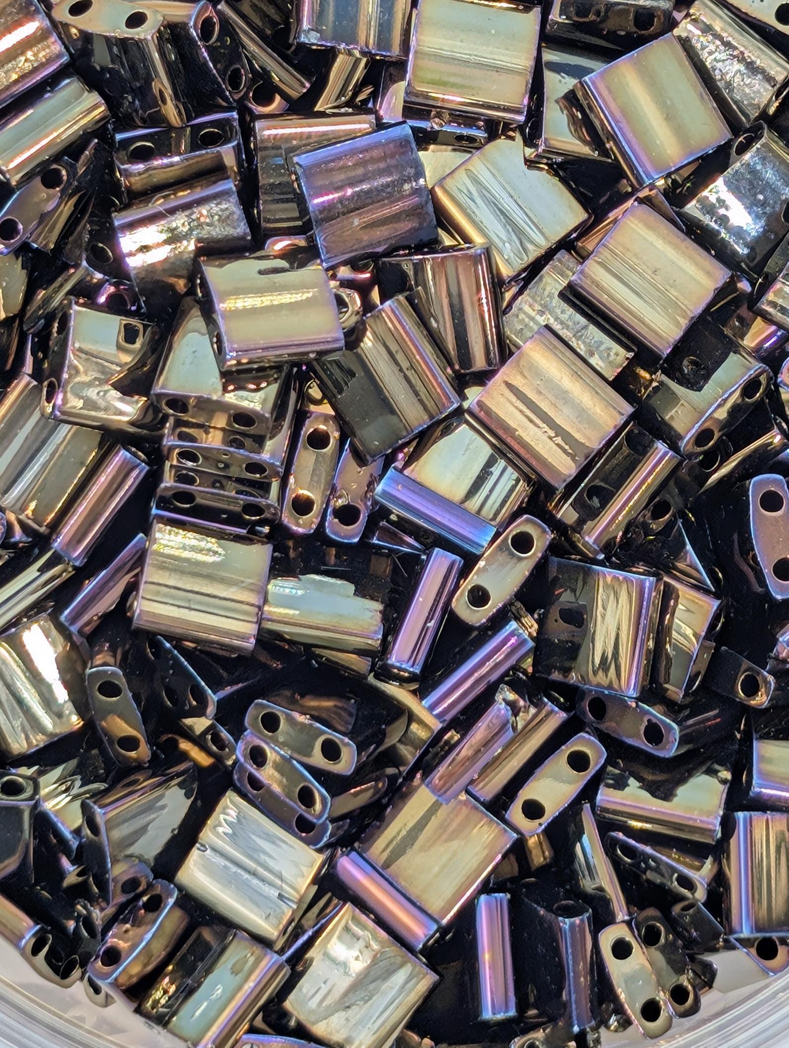 Discover the beauty of Miyuki Tila Beads in the stunning Dark Olive with a dazzling Metallic Rainbow finish. Each 7.5-gram package is filled with high-quality Tila beads, perfect for your next jewelry-making or crafting project. Known for their unique, flat tile shape, these beads can easily create intricate designs and patterns, adding a touch of elegance to any piece.