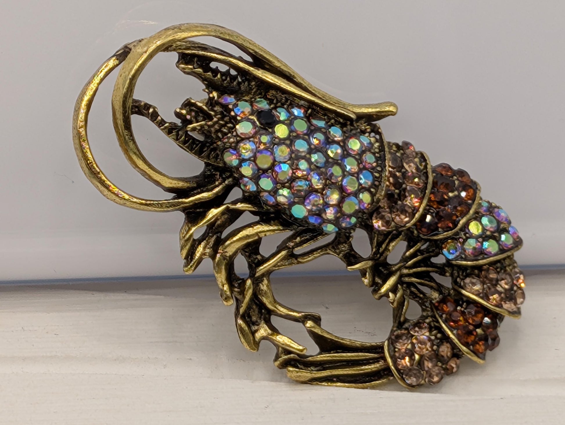 Discover the charm of this whimsical brooch, inspired by the delicate beauty of a topaz shrimp. Perfectly suited as a decorative pin or an elegant accessory, it makes a unique gift idea for beach lovers and jewelry enthusiasts alike. Crafted with attention to detail, this gold plated brooch adds a touch of playful sophistication to any outfit.