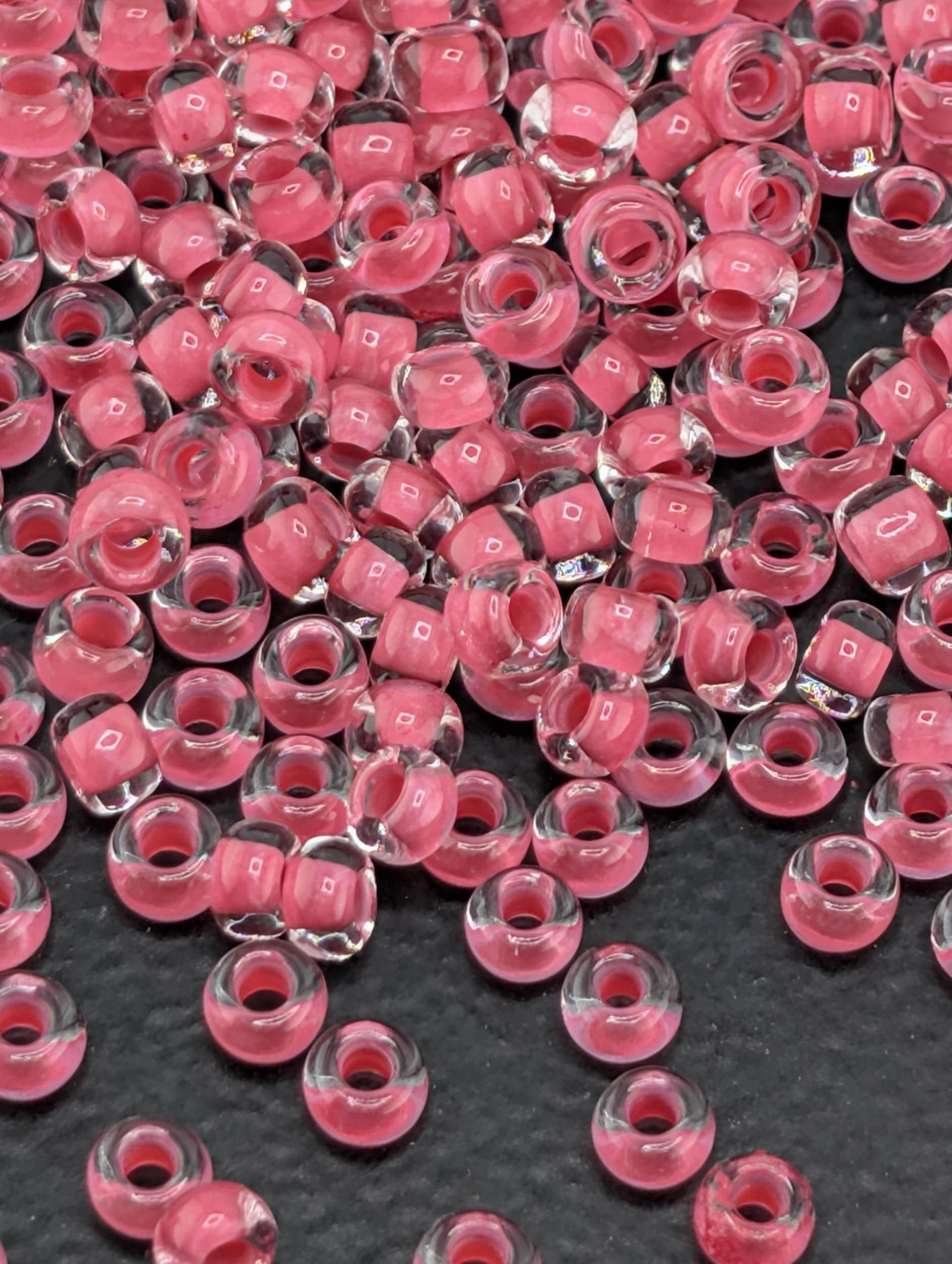 Transparent Terra Intensive Pink Lined Clear | Preciosa Ornela Seed Beads | Size 8/0 | 15g Pkg ~630 pcs